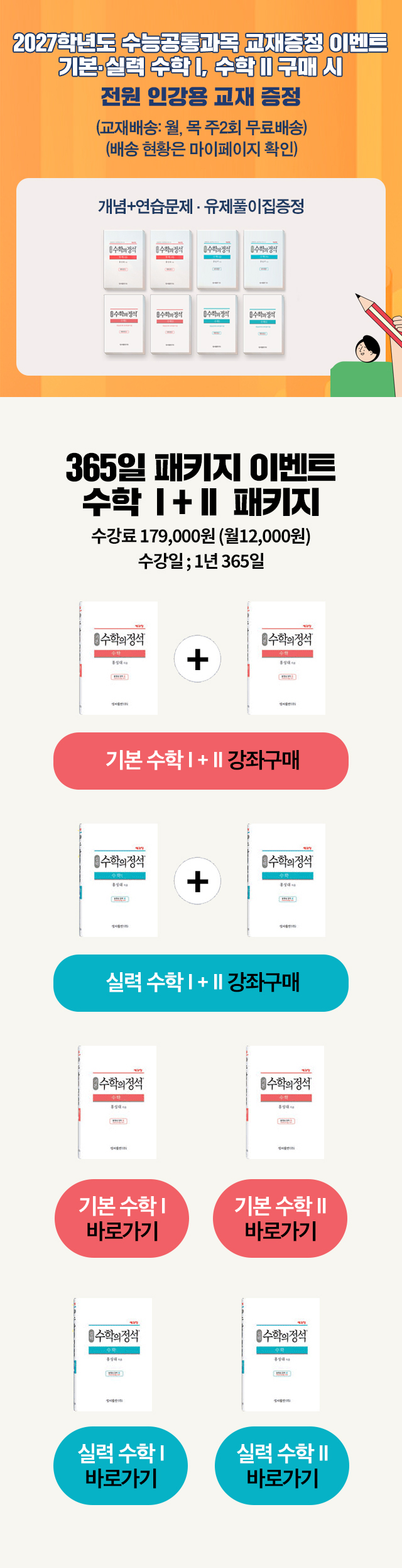 기본 1,2 365 패키지 실력 1,2 365 패키지 기본 수학1 기본 수학2 실력 수학1 실력 수학2